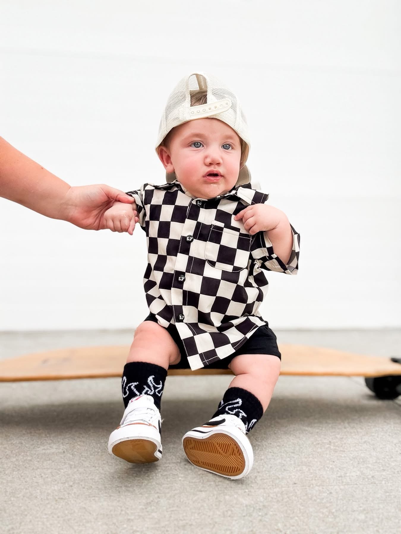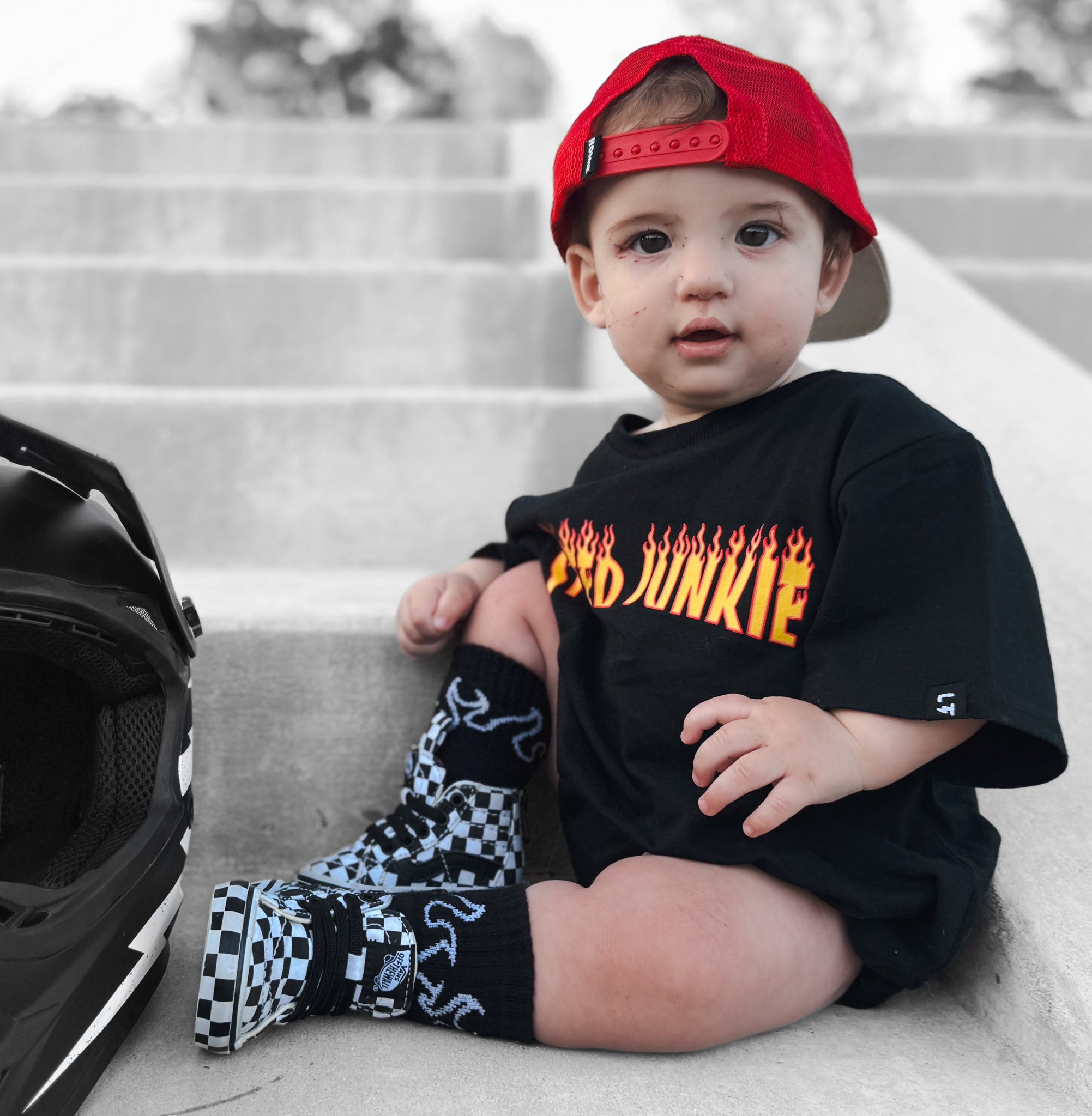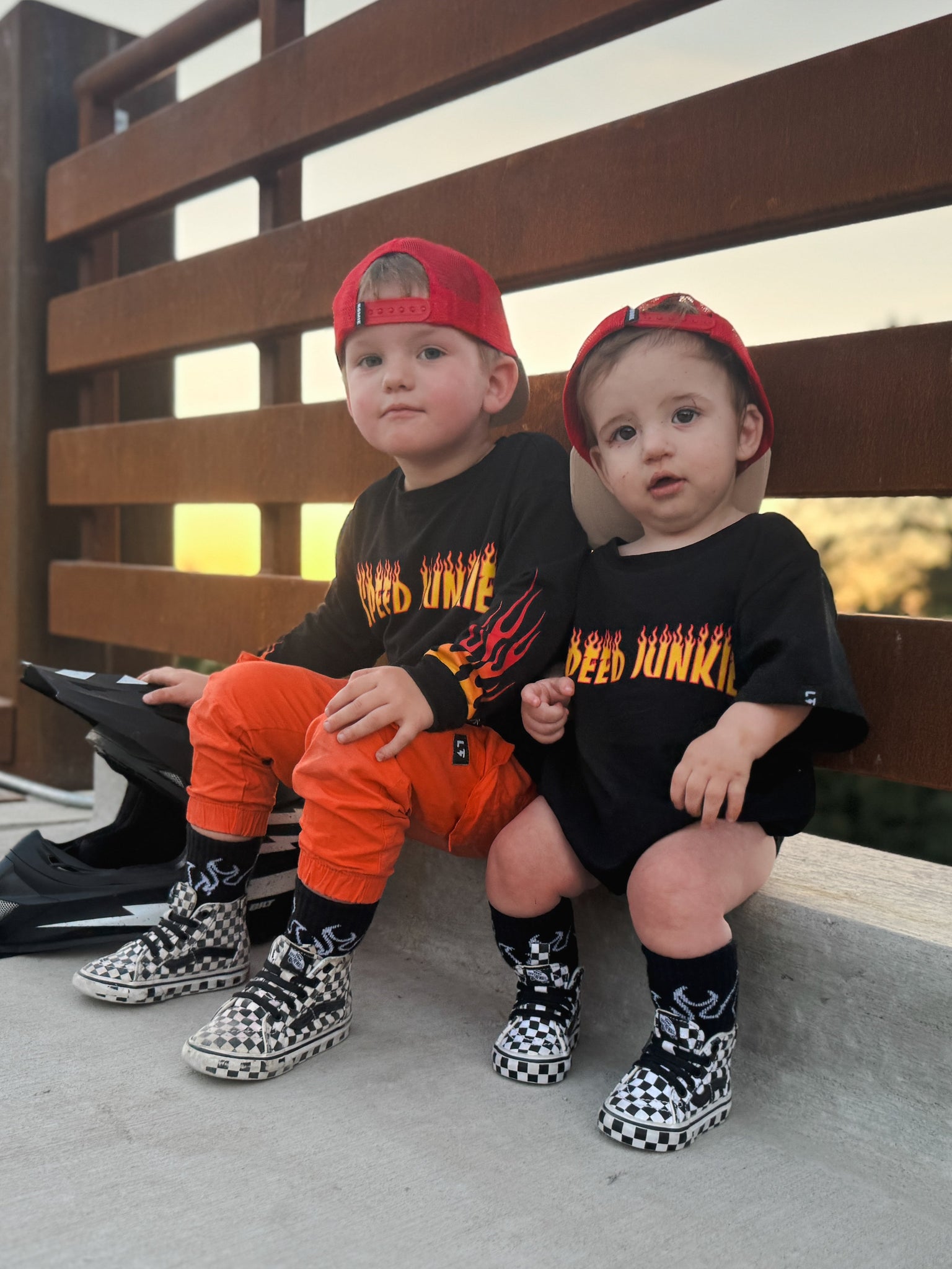 Sizes Infant, Extra Small, Small, Medium have logo grips on the bottom of the feet large have a stitched logo on the bottom of the feet.