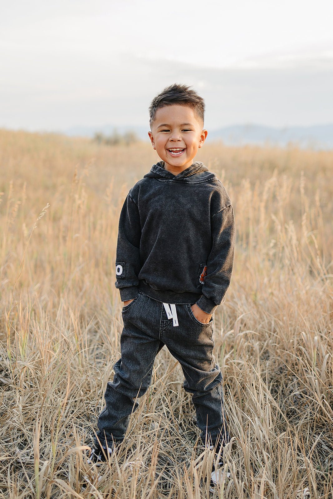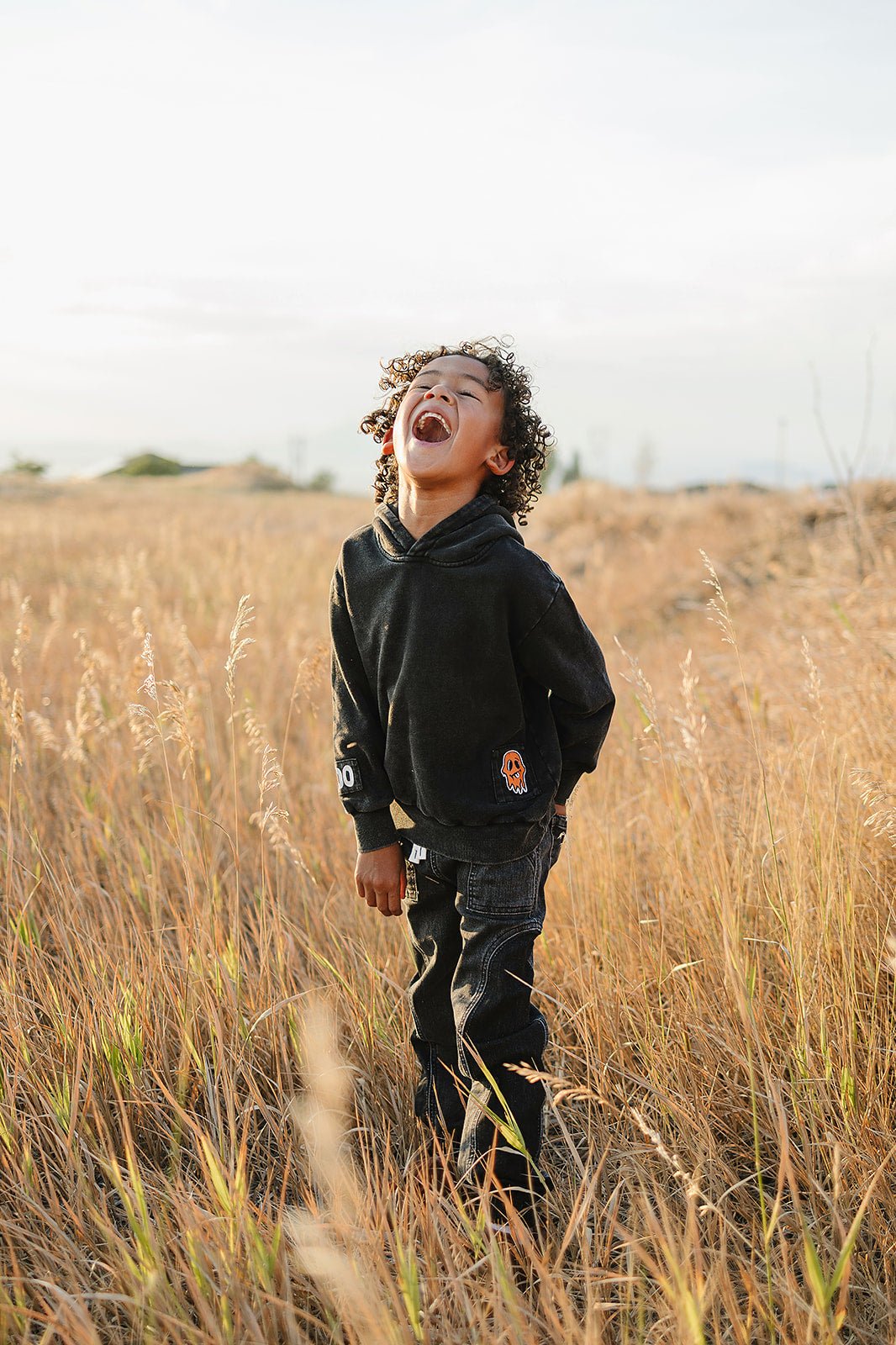 Get your little one ready for spooky season with the Boo Hoodie! Featuring fun patchwork prints stitched right onto an acid-wash fabric, this hoodie combines a cool, worn-in look with super soft warmth. Perfect for playful adventures and chilly nights, it’s sure to be their new favorite cozy companion.