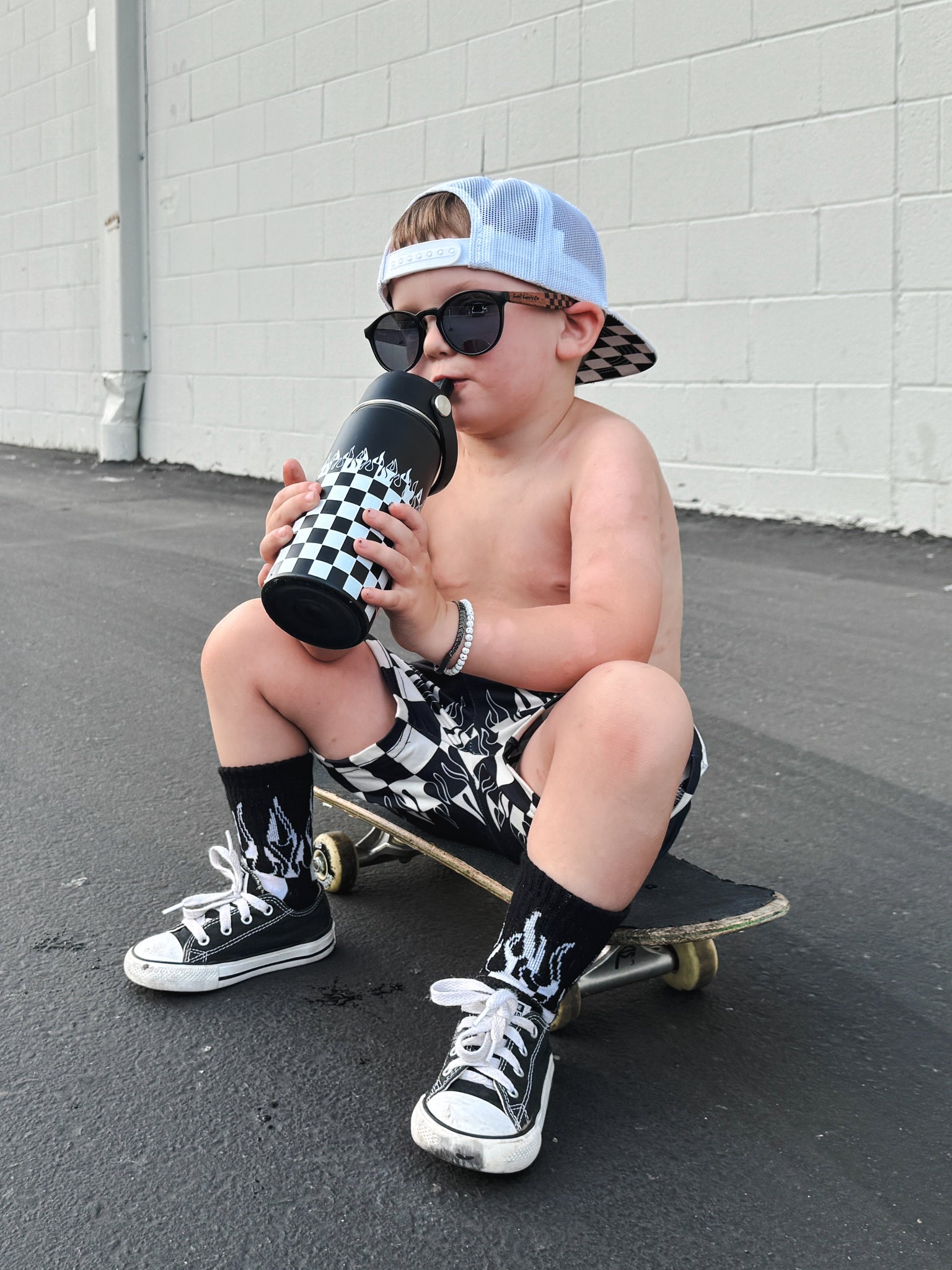 • Load image into Gallery viewer, Checker Flame 16 Oz Water Bottle