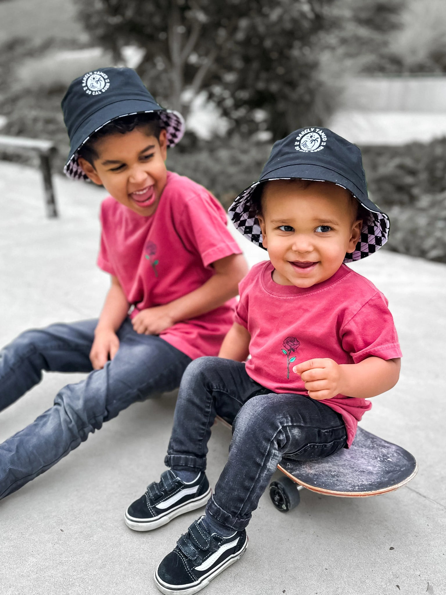 The most epic bucket hat of 2025! Barely Tamed’s coast bucket hat is a 2 in 1: wear it with our embroidered solid black side or flip it inside out and rock our distressed grunge checkered print for a bolder look. This hat is going to change the game when it comes to bucket hats.
