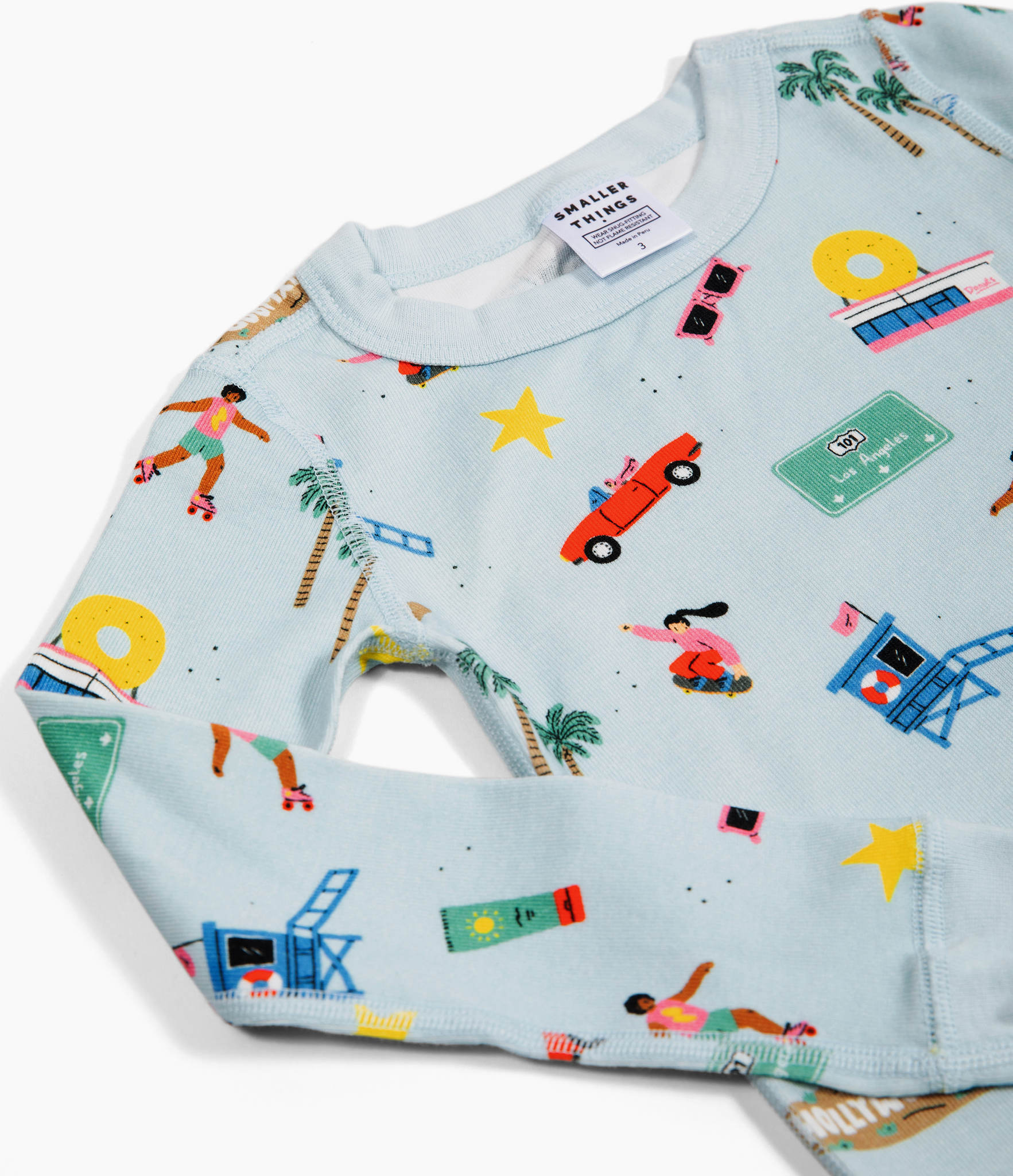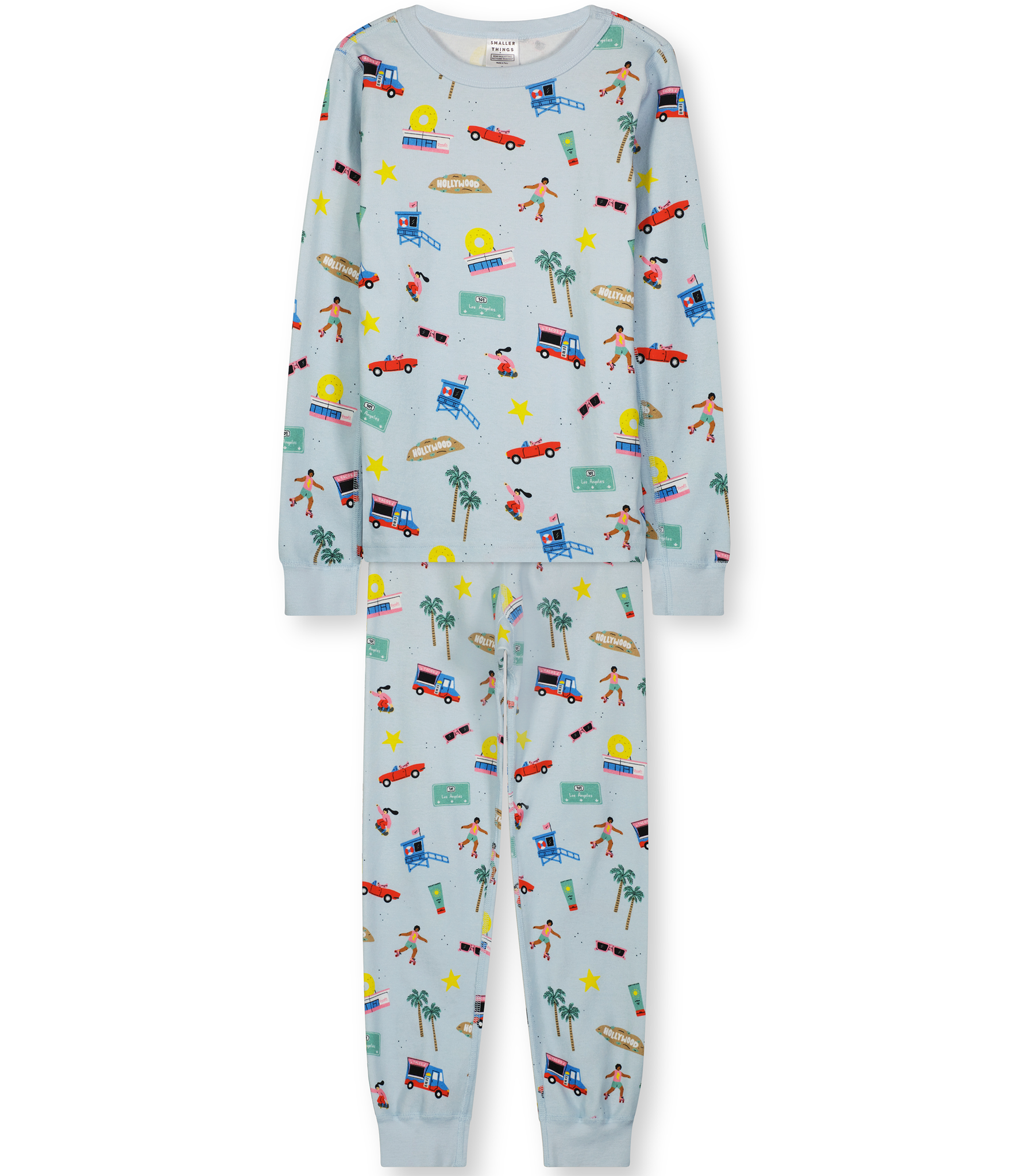California here we come. Theyโ€™ll definitely sleep tight in this combed rib knit, 100% organic cotton set, complete with comfy ribbed cuffs and an elastic waist.