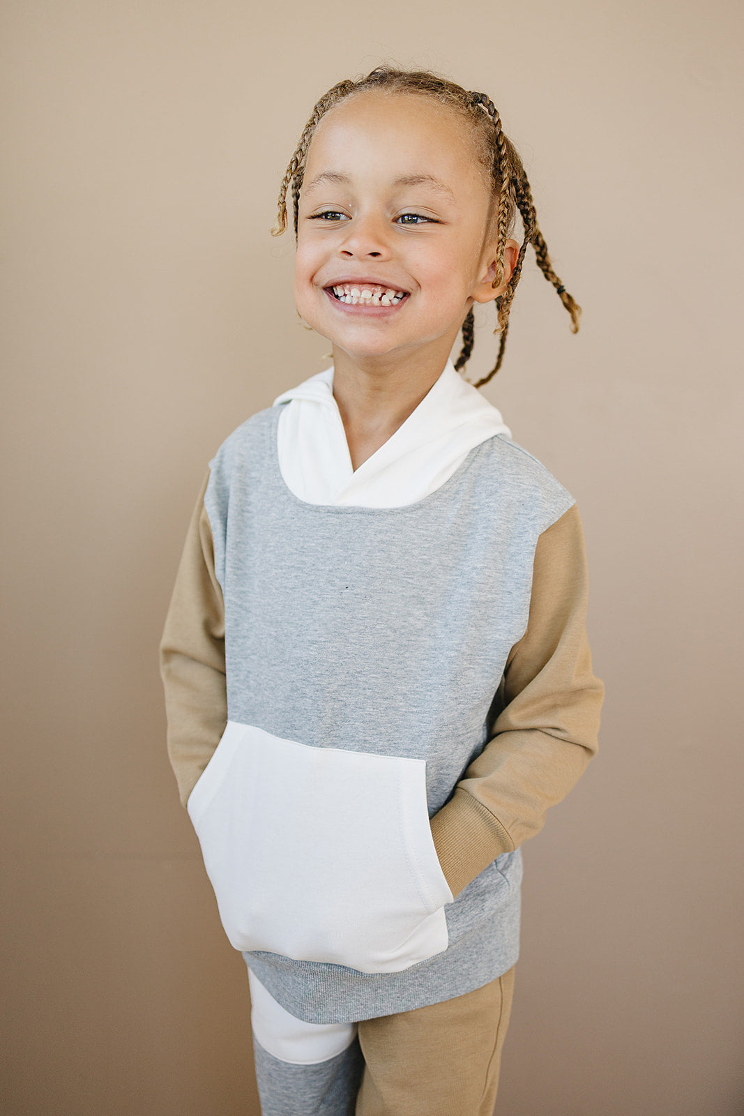 Get your little one moving in style with the Holland Jogger Set! Featuring a super fun color block design and ultra-soft fabric, this set keeps kids comfy all day. The front pouch pocket is perfect for chilly hands, while the elastic waistband and adjustable drawstring ensure a snug, playful fit every time.