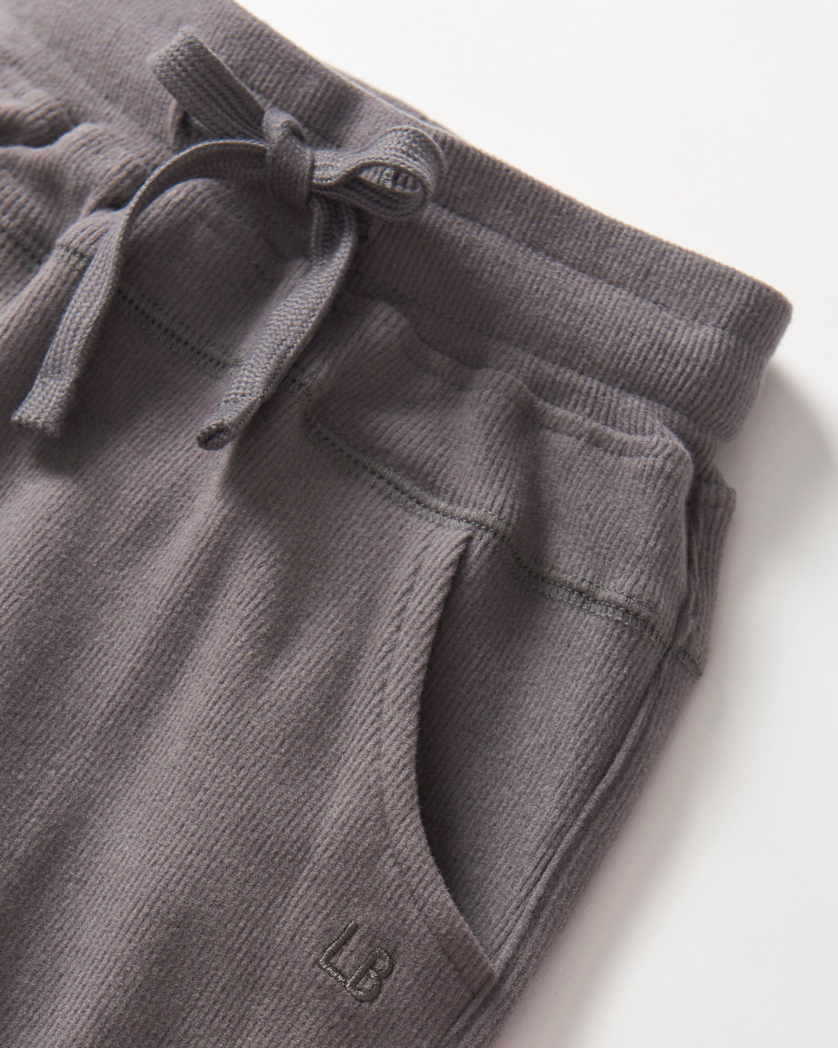 Everyday comfort, made easy. Designed in our soft brushed ribbed fabric, these joggers keep your little one comfy from morning to night. The elastic waistband with a functional drawstring makes for the perfect fit, while front pockets and ribbed ankle cuffs complete the classic look. Finished with our signature embroidered “LB” logo.