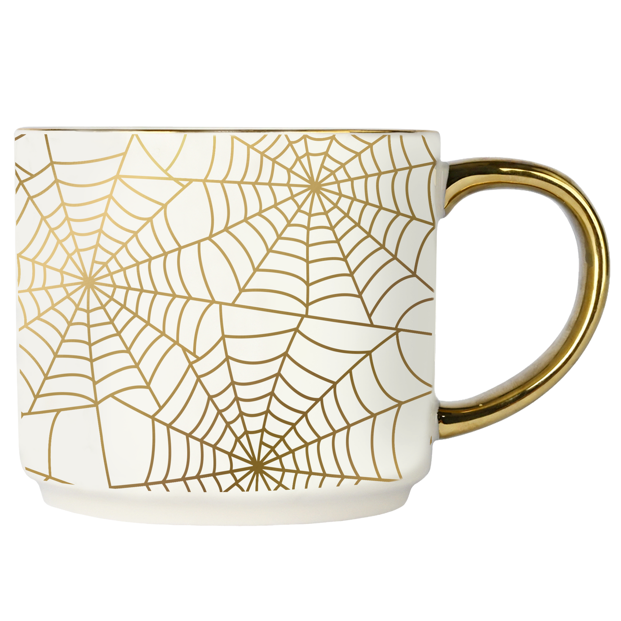 Embrace the cozy charm of Halloween with our Spiderwebs mug. Crafted for those who love the season's cozy vibes and subtle spooky touches, this mug brings a playful, yet refined, twist to your Fall collection. The elegant gold spiderweb design wraps around the mug, adding a whimsical detail without feeling over the top. Perfect for sipping your favorite hot drink whether it's a warm latte, mulled cider, or freshly brewed coffee, this mug sets the tone for the season.