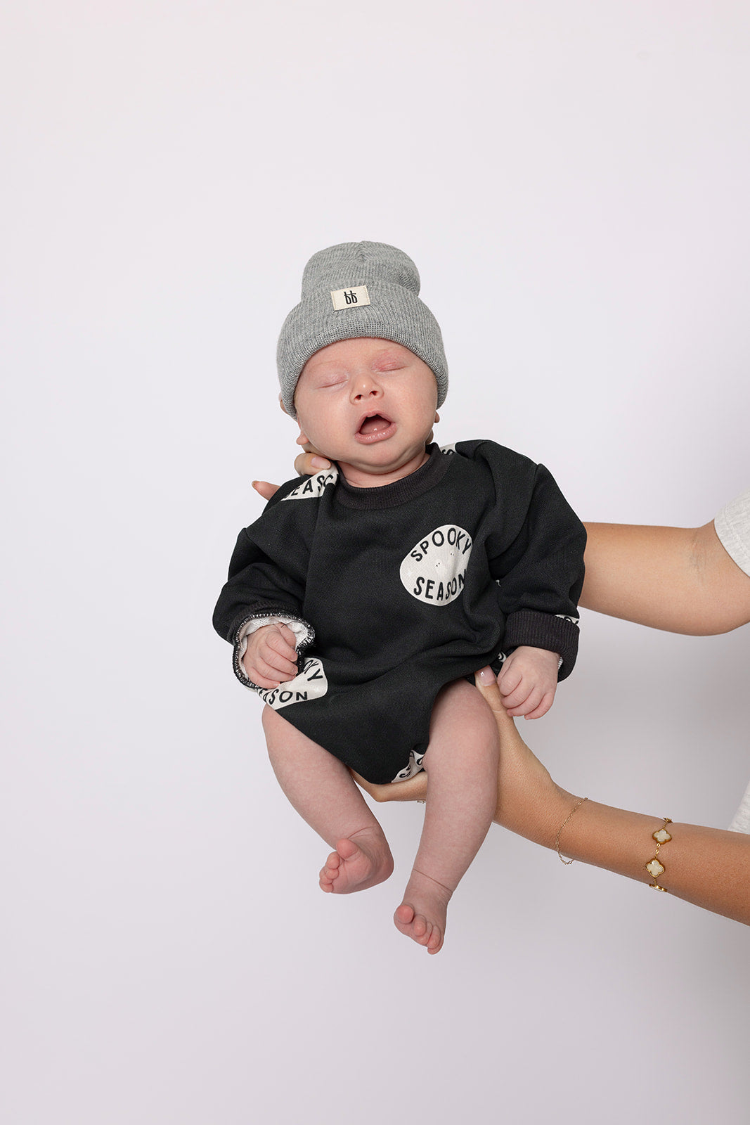 Made for the littlest ones to join in the fun, our sweatshirt romper is cozy, practical, and festive for spooky season. Easy to wear for playtime, outings, or Halloween celebrations, it’s a fall favorite for babies. Don’t forget about the matching mom and child sweat sets for the complete look.