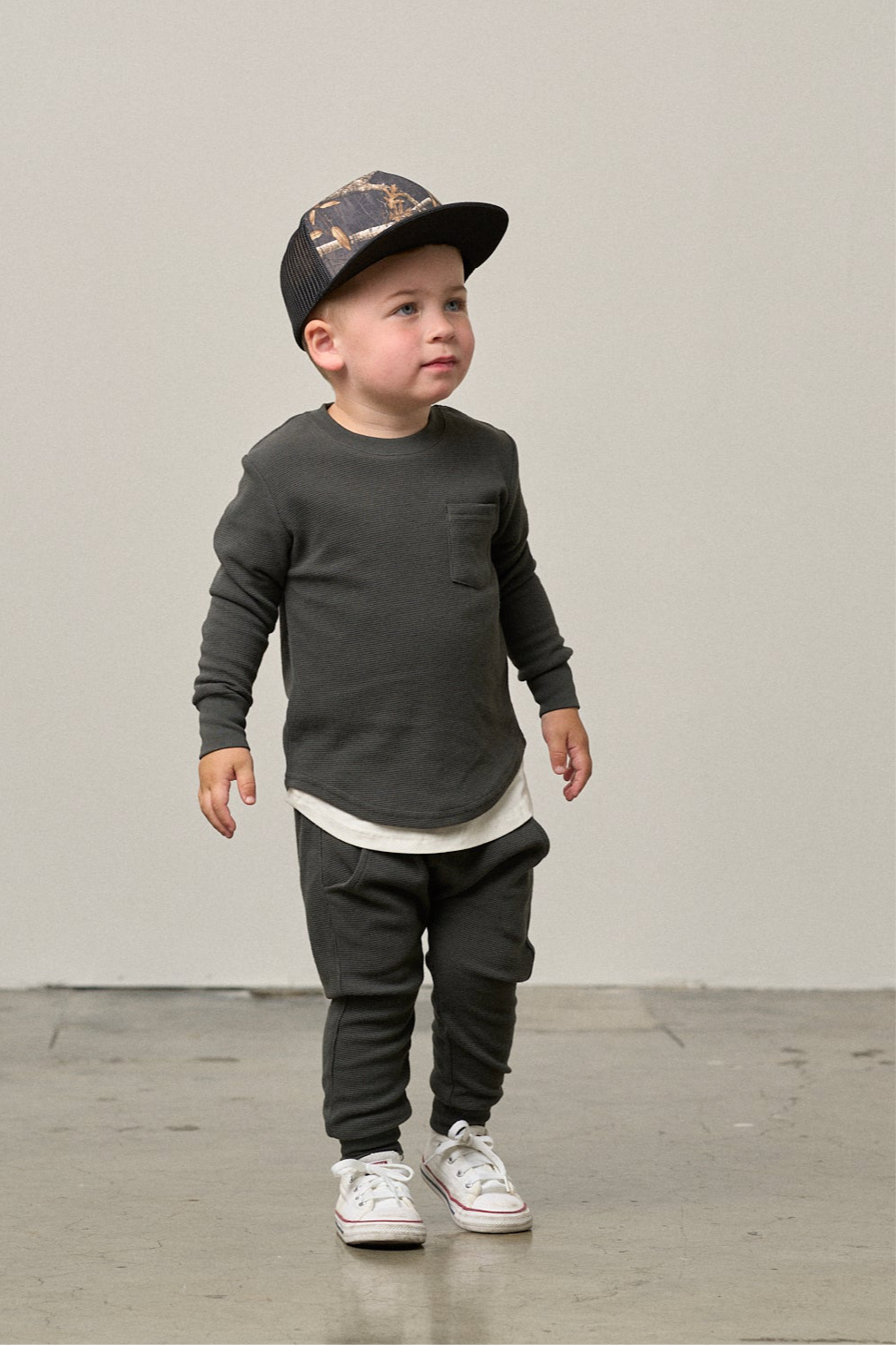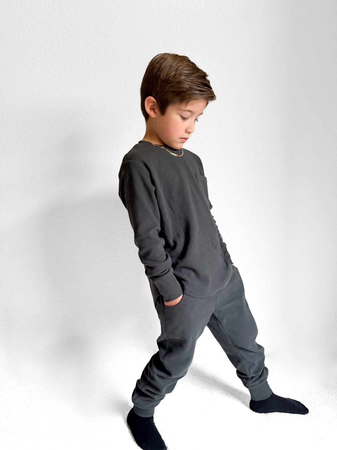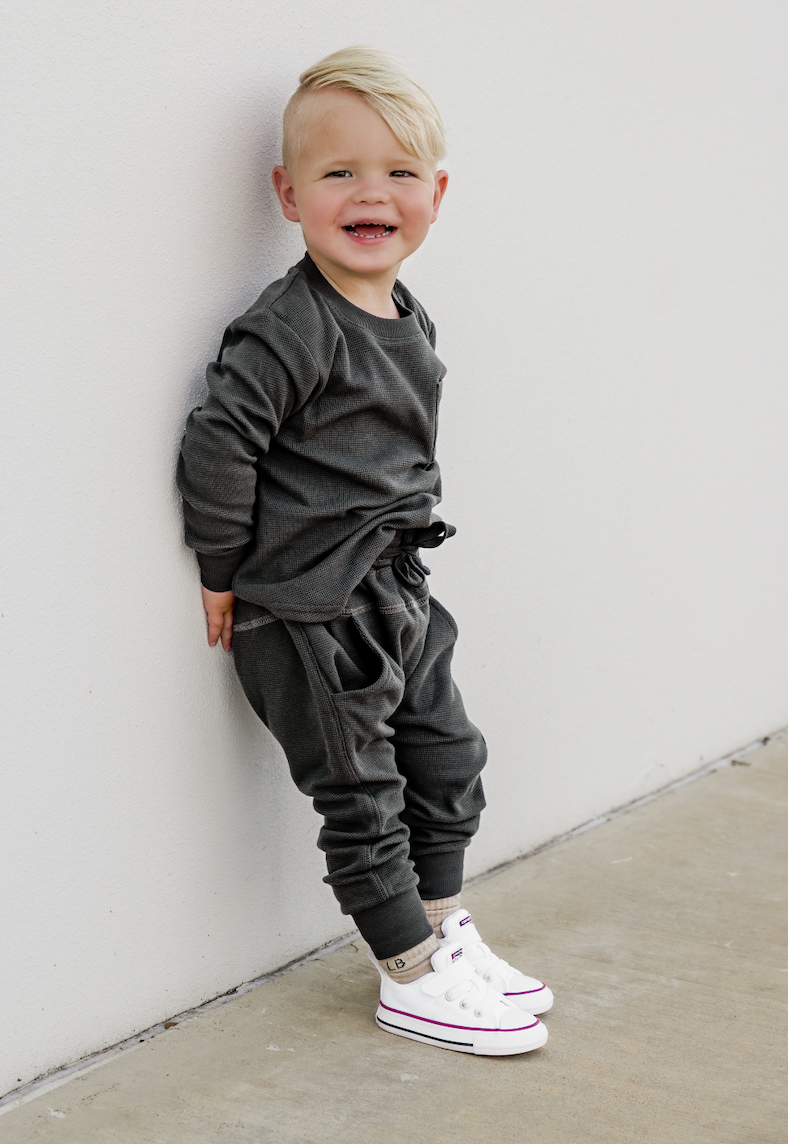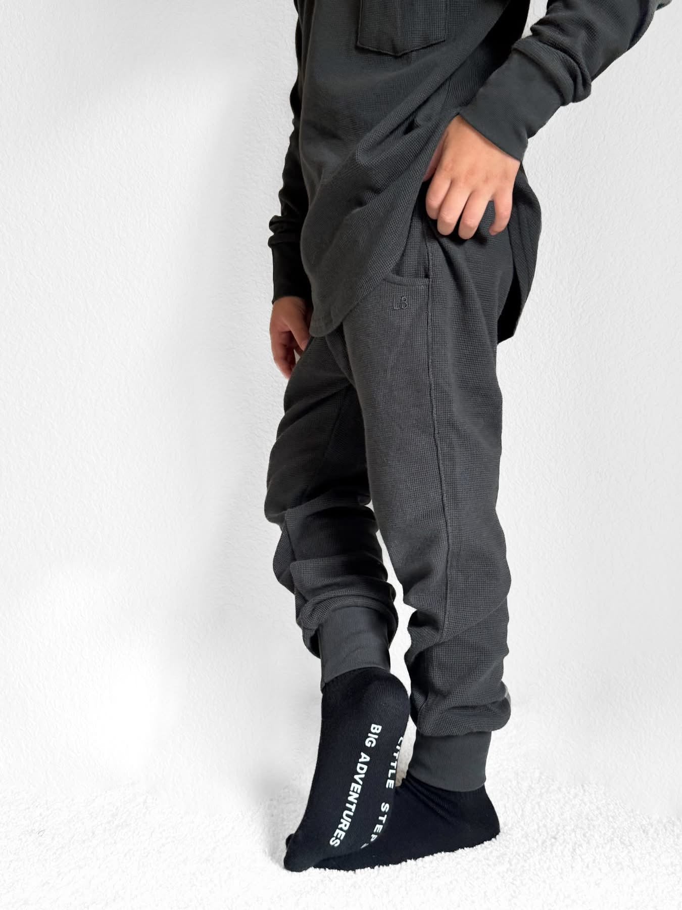 These seasonal waffle joggers feature an adjustable drawstring and elastic waistband for a customized fit, perfectly blended material that gets softer with beach wash, and a relaxed comfortable design for everyday wear and unlimited style.